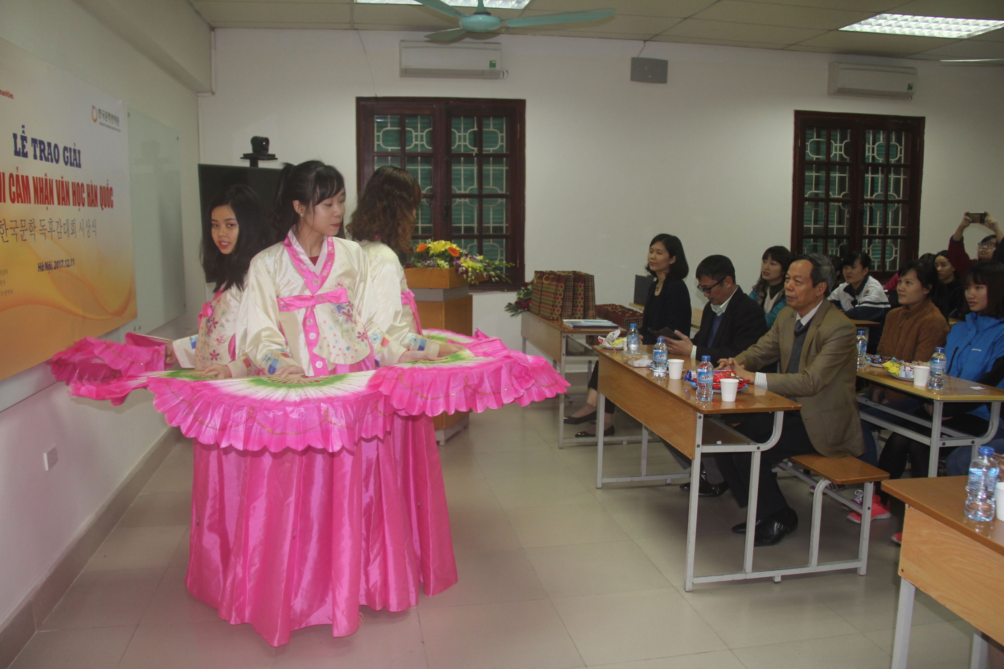 Sinh viên Bộ môn Hàn Quốc học, Khoa Đông phương học, Trường ĐHKHXH&NV trong một tiết mục biểu diễn văn nghệ