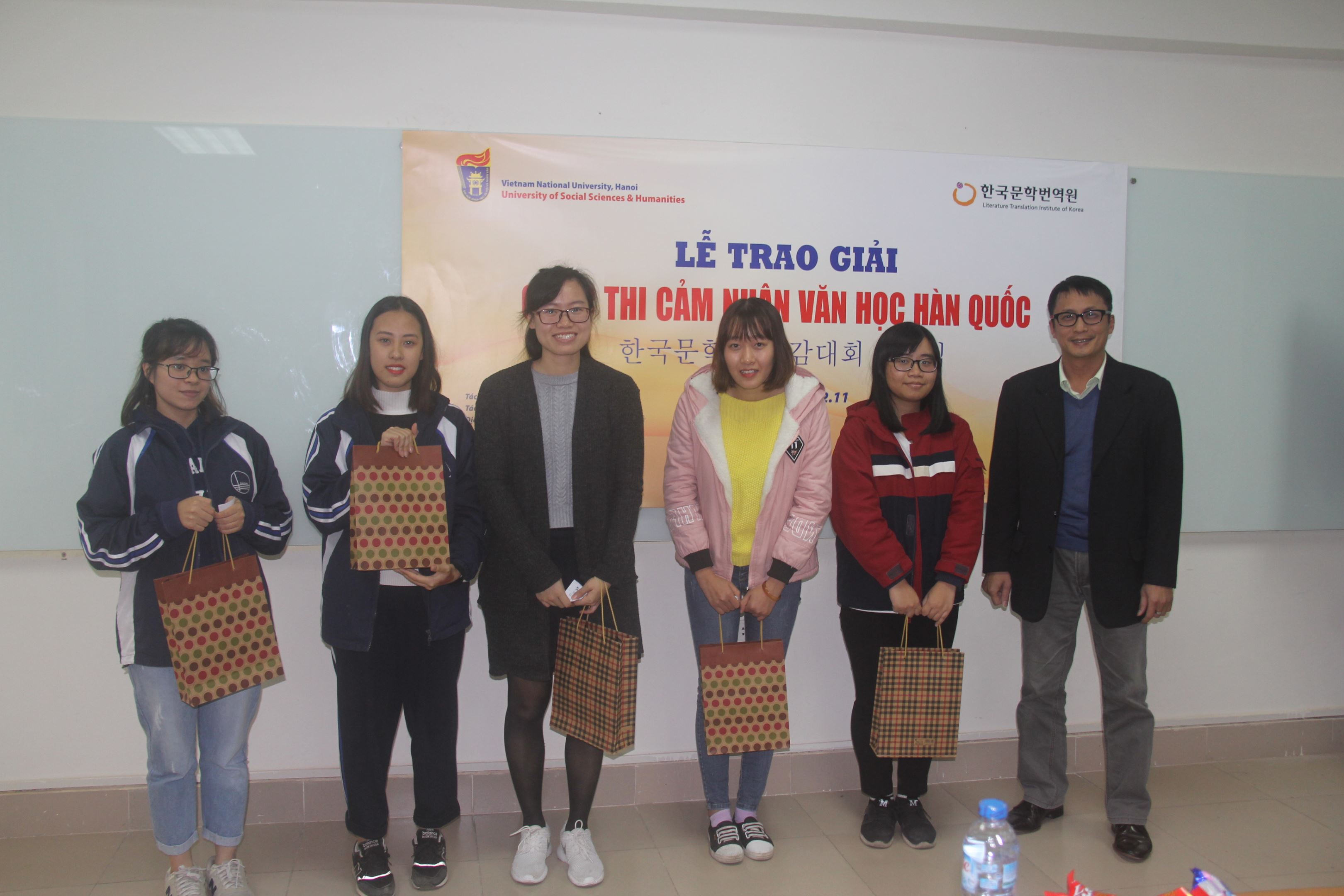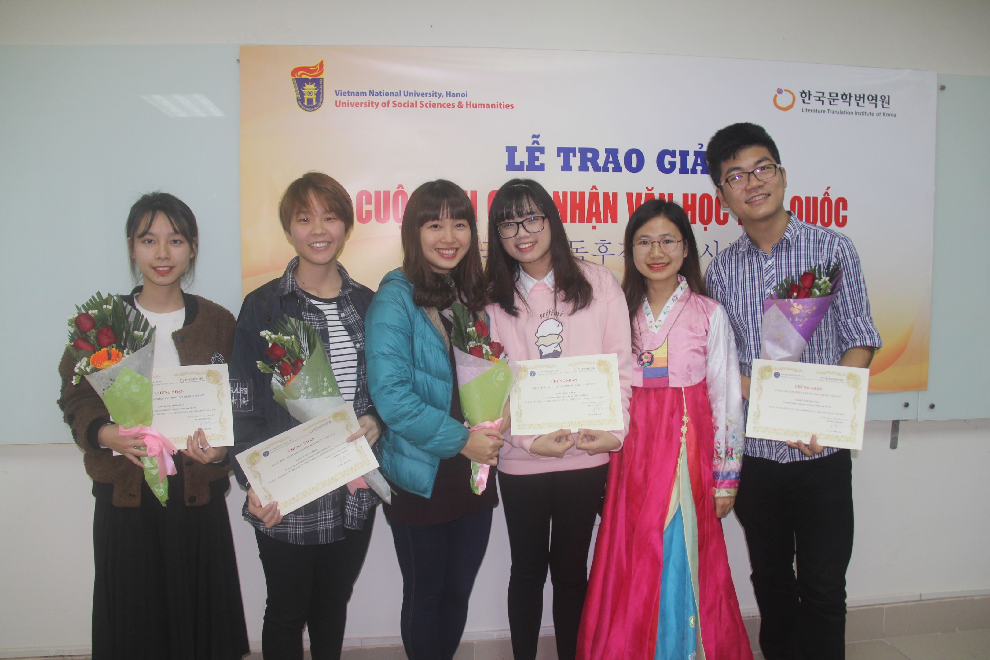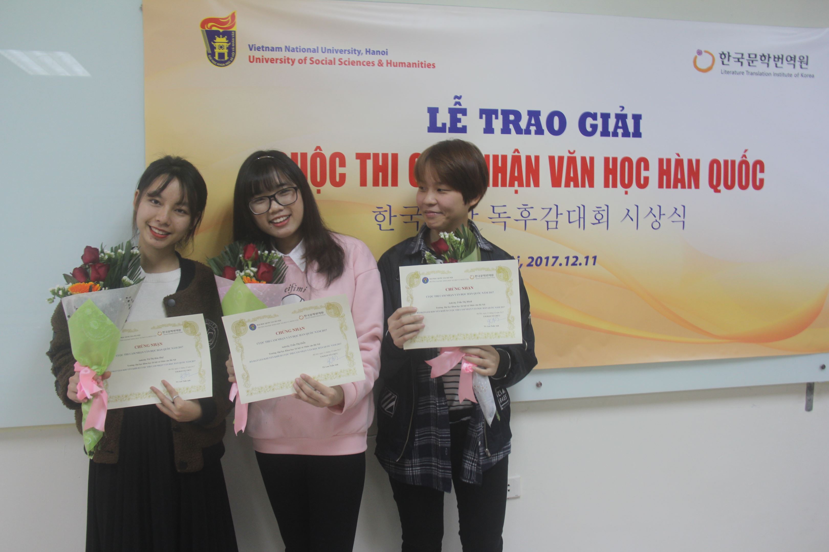 Niềm vui của các sinh viên nhận giải thưởng cuộc thi Cảm nhận văn học Hàn Quốc 2017