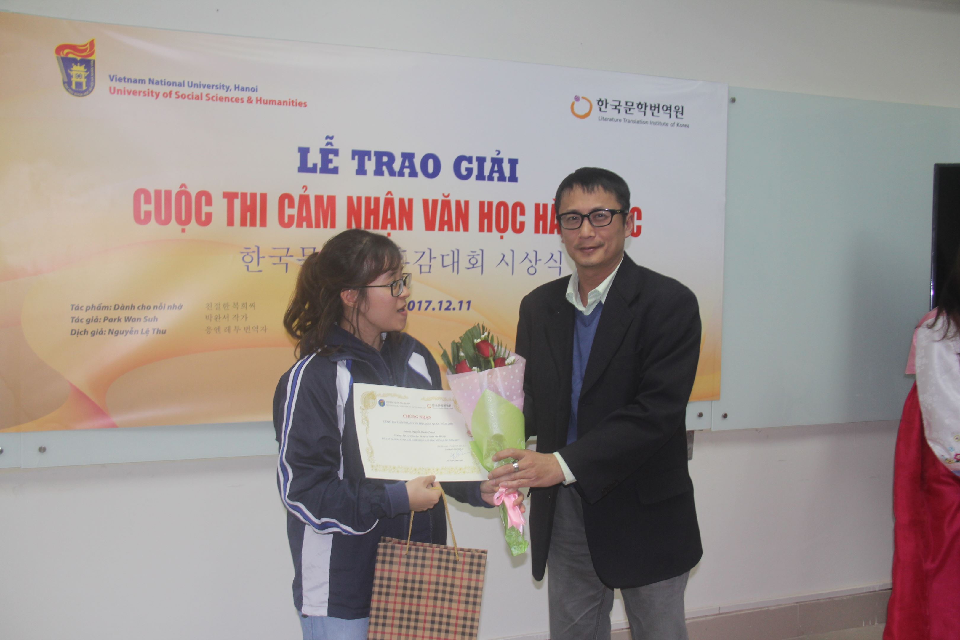 Trải qua nhiều vòng chấm, ngày 11/12/2017, Khoa Đông phương học đã tổ chức lễ trao giải cuộc thi, công bố và trao nhiều phần quà có giá trị cho 11 tác giả có bài viết cảm nhận tác phẩm xuất sắc nhất.