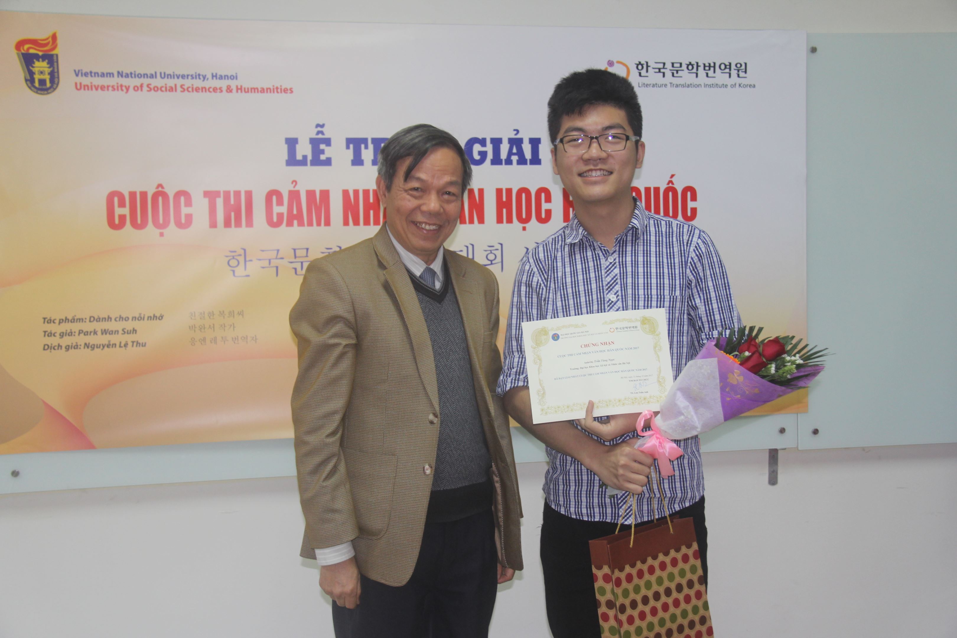 Năm 2017, Cuộc thi cảm nhận văn học Hàn Quốc 2017 giới thiệu đến các bạn sinh viên tác phẩm chủ đề “Dành cho nỗi nhớ” của tác giả Hàn Quốc Park Wan Suh, được chuyển ngữ sang tiếng Việt bởi dịch giả Nguyễn Lệ Thu. Cuộc thi thu hút sự tham gia của sinh viên thuộc nhiều trường đại học trên toàn quốc.