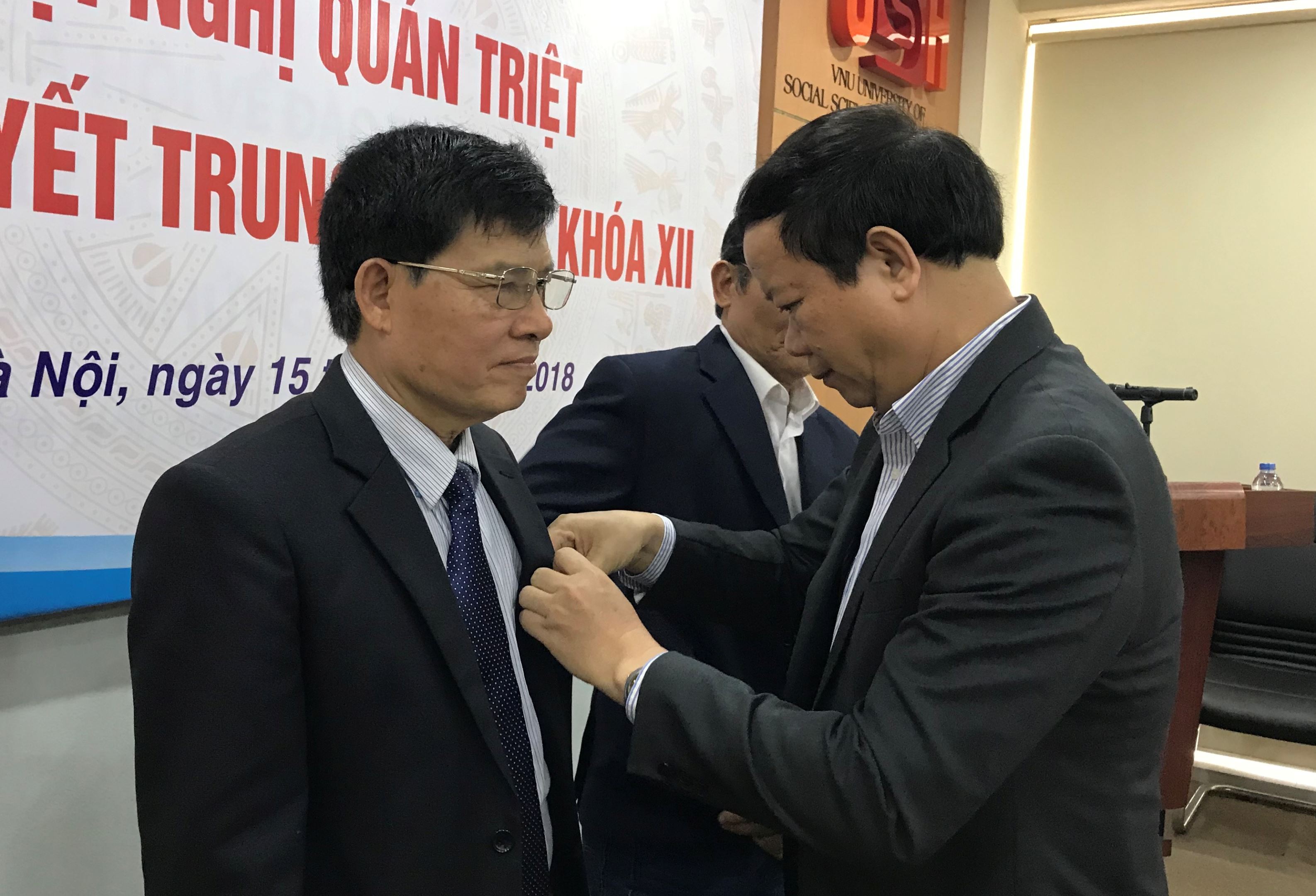 Ghi nhận những đóng góp của các đồng chí cho công tác Đảng và cho sự phát triển của Nhà trường, của ĐHQGHN thời gian qua, đồng chí Nguyễn Văn Kim bày tỏ mong muốn: trên cương vị công tác của mình, với tâm huyết và trải nghiệm phong phú của của một nhà khoa học, các đồng chí sẽ tiếp tục có những cống hiến quan trọng và nhiều hơn nữa cho sự phát triền vững mạnh của Đảng bộ Nhà trường.