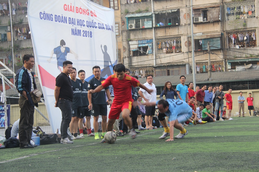 Trận Bán kết chiều 4/11 thực sự mang đến cảm xúc thăng hoa cho cả sân bóng, không chỉ cầu thủ cả hai đội. Trước giờ khai cuộc, sự xuất hiện của Ban lãnh đạo, Bí thư Đảng ủy, Hiệu trưởng, Chủ tịch công đoàn Trường và nhiều thầy, cô giáo khiến cho không khí trên sân càng nóng rực.